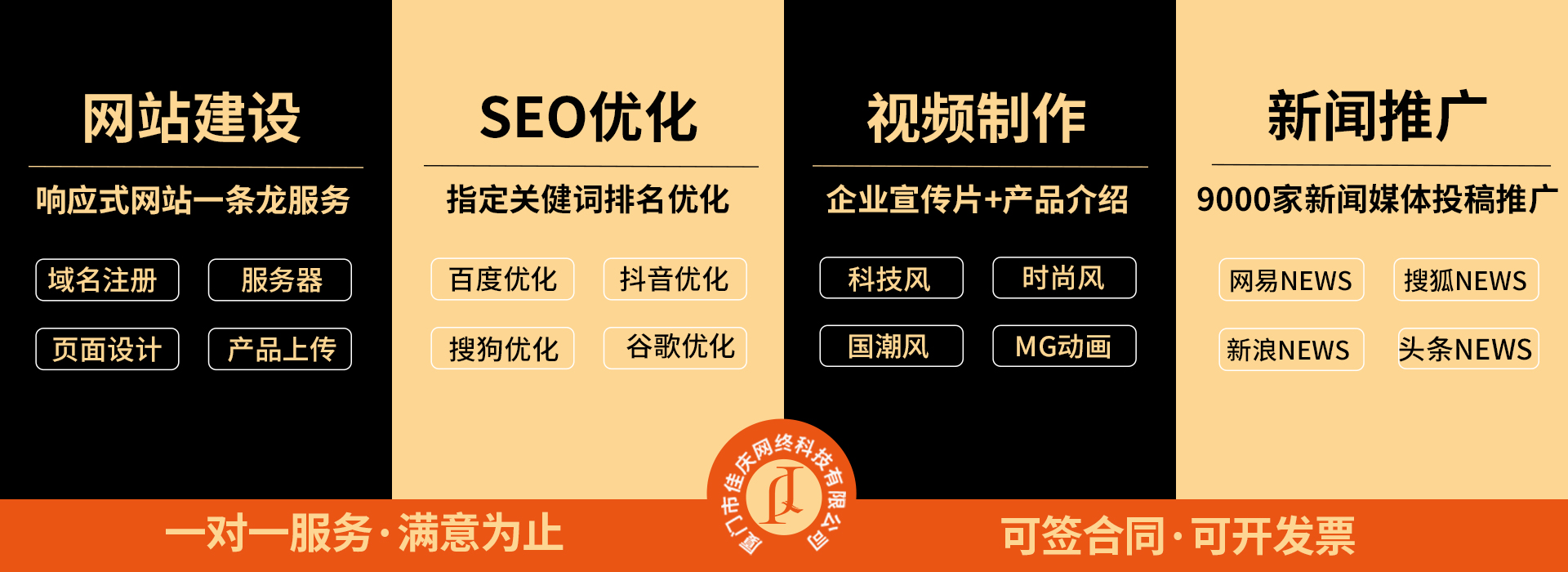 H5響應(yīng)式網(wǎng)站搭建設(shè)計(jì).外貿(mào)網(wǎng)站制多.站群推廣.百度谷歌SEO優(yōu)化推廣.媒體新聞投稿.小程序公眾號(hào)開發(fā).視頻宣傳片制作.企業(yè)郵箱滿足不同行業(yè)客戶的各種需求